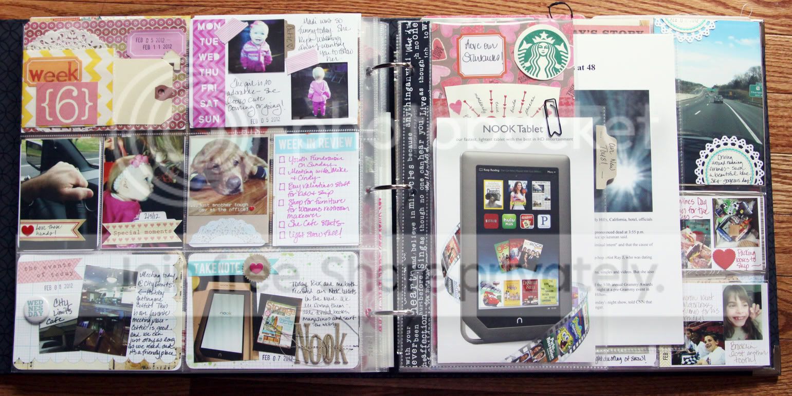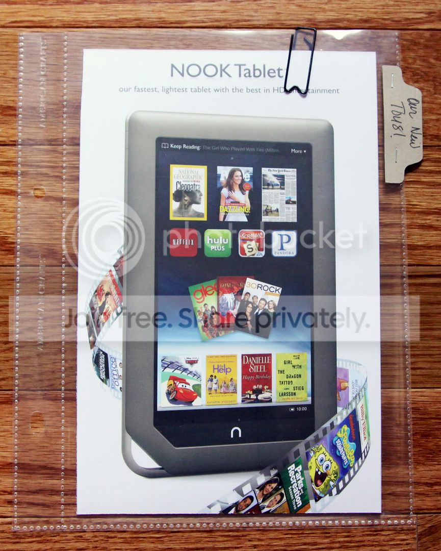 Hubby and I got our Nook Tablets this week so I wanted to keep a bit of that for my PL. I actually tucked the little manual/booklet right in a smaller page protector. I thought how funny it will be to look back on this in a few years when this technology will be obsolete.