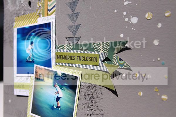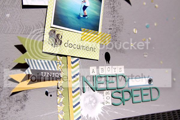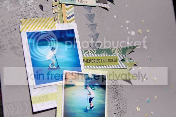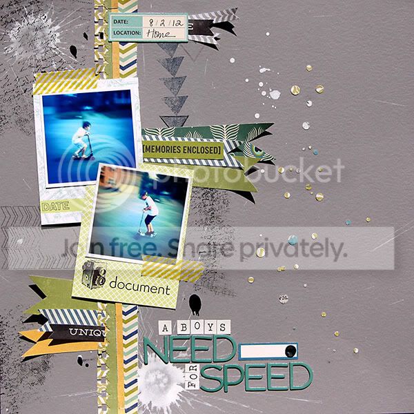 Hello Monday! Thought I'd share a new layout with you today. I don't often do a boyish layout. I have several nieces that usually fill up my girly pages but I also have two pretty awesome nephews that I love dearly! They usually don't like their pictures taken as much as the girls but my daughter grabbed these pretty cool pics on her phone this summer of them riding their scooters and I just had to use them!