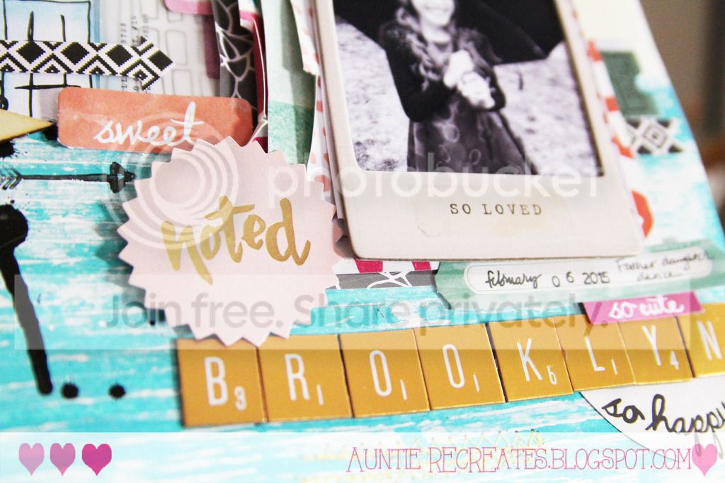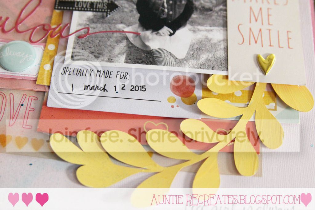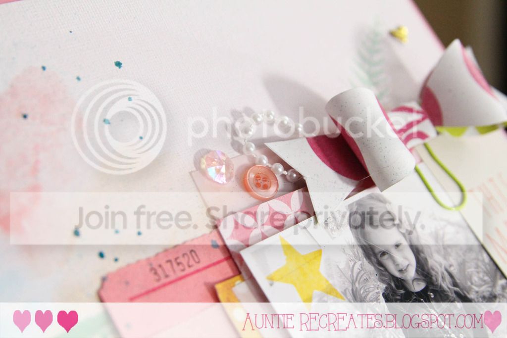 The embellishments were from my stash. I tried to find all the colors in the mood board to complete my layout.