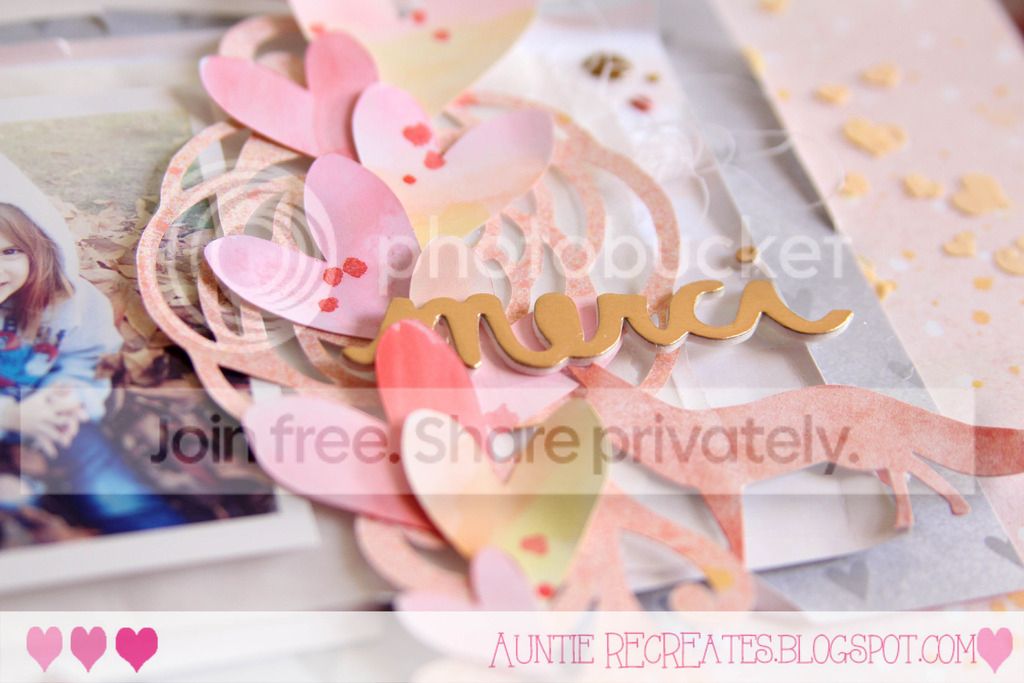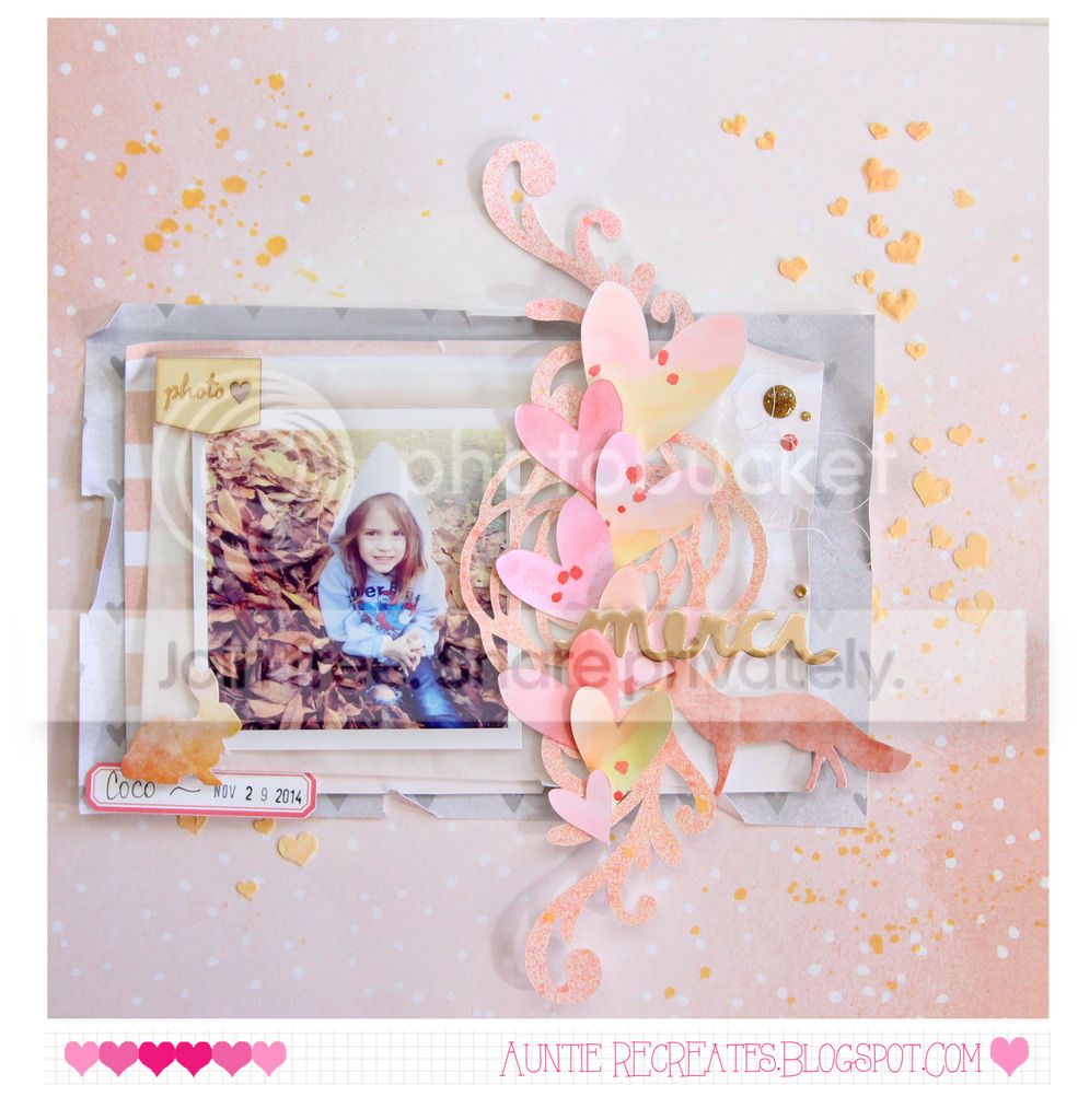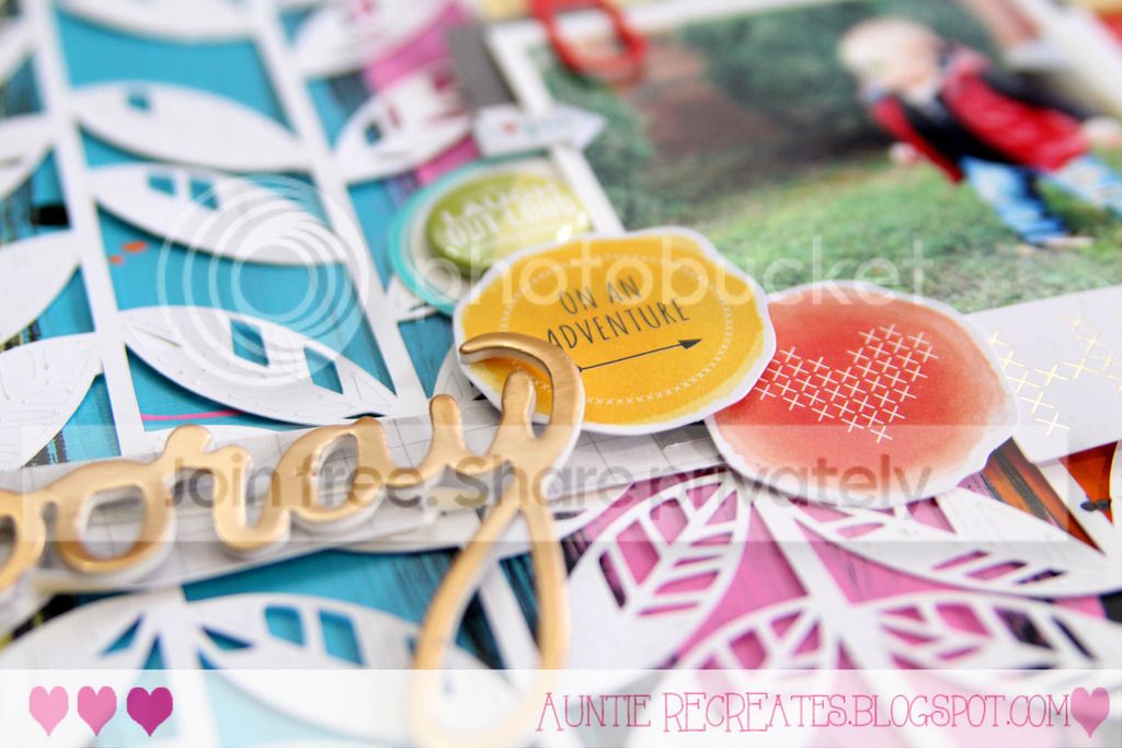 This cut file is from the Silhouette store. I had it in my stash and pulled it out for this layout. I painted it with acrylic paint to match the color scheme.